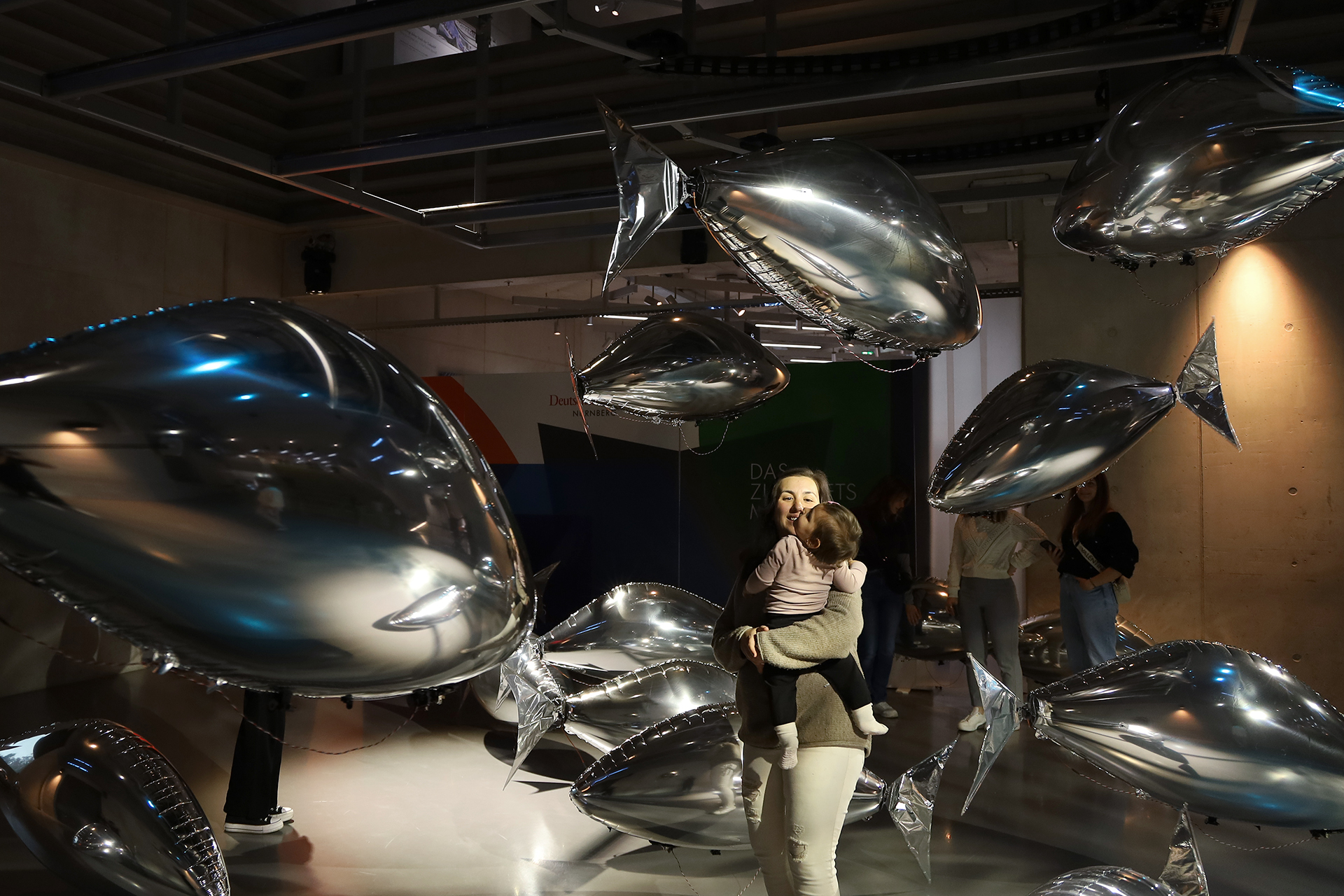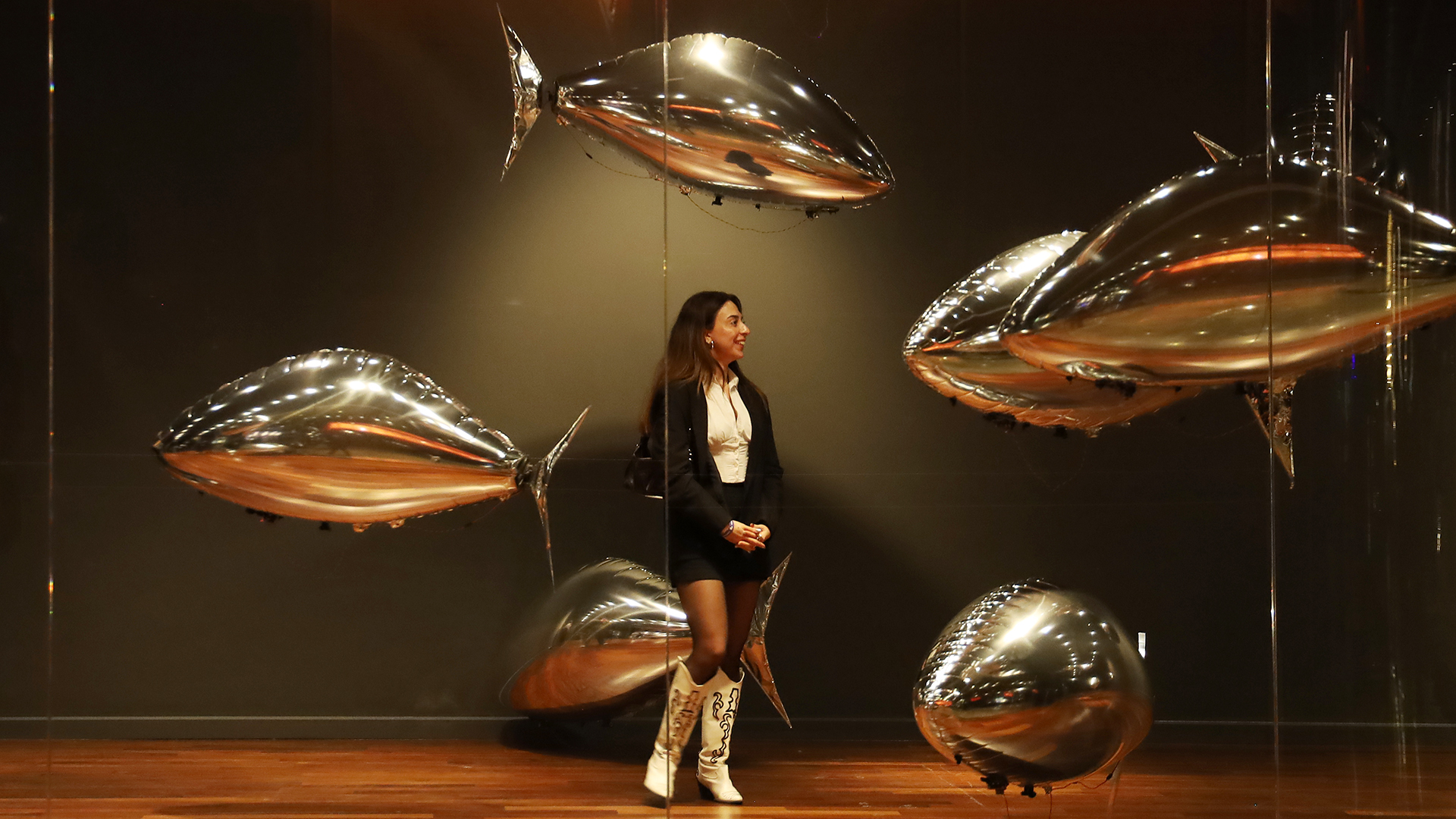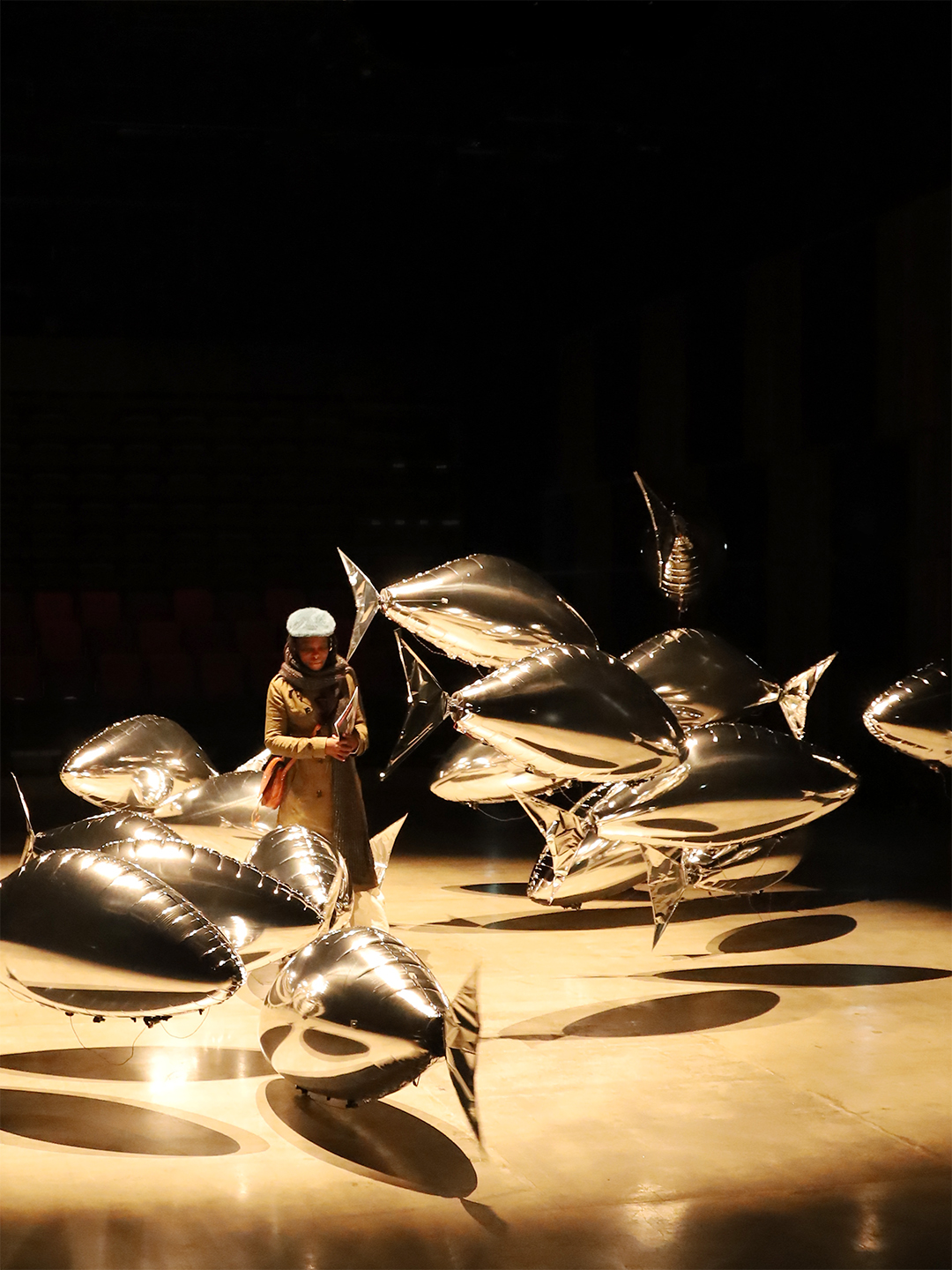 FLOCK OF by bit.studio - Discover the supernatural nature of floating fish. An immersive installation art that presents a spectacle of a school of fish soaring through the air, transformation into a flock of fish. Traverse the borderlands of art and technology.