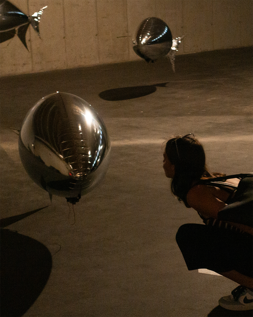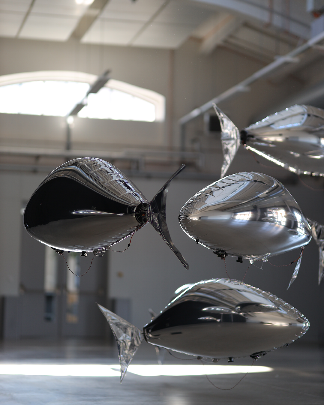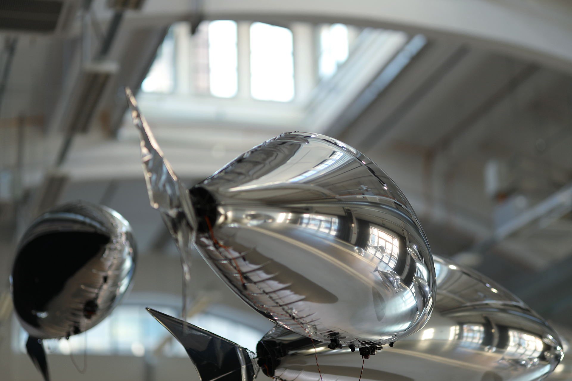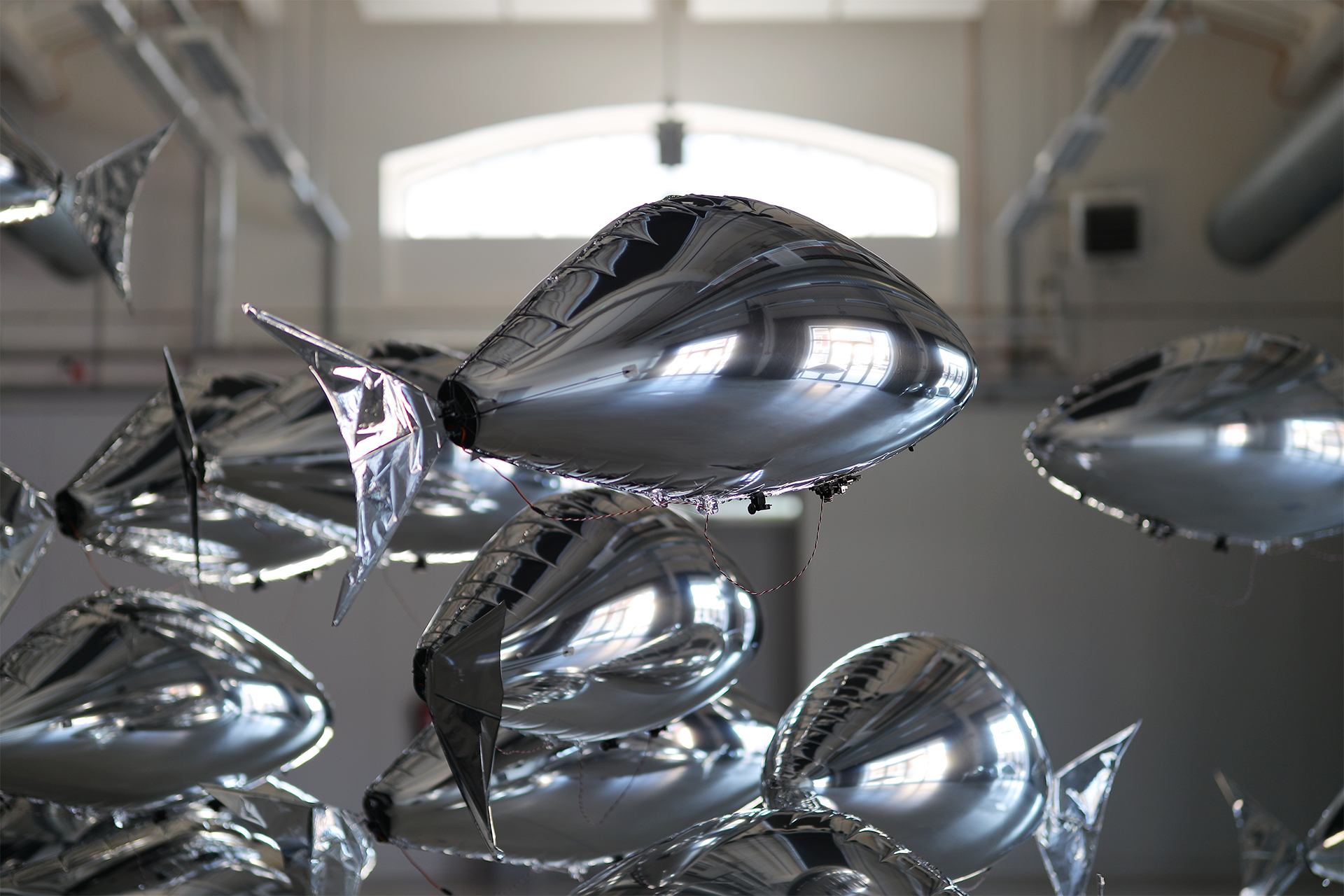 FLOCK OF by bit.studio - Discover the supernatural nature of floating fish. An immersive installation art that presents a spectacle of a school of fish soaring through the air, transformation into a flock of fish. Traverse the borderlands of art and technology.