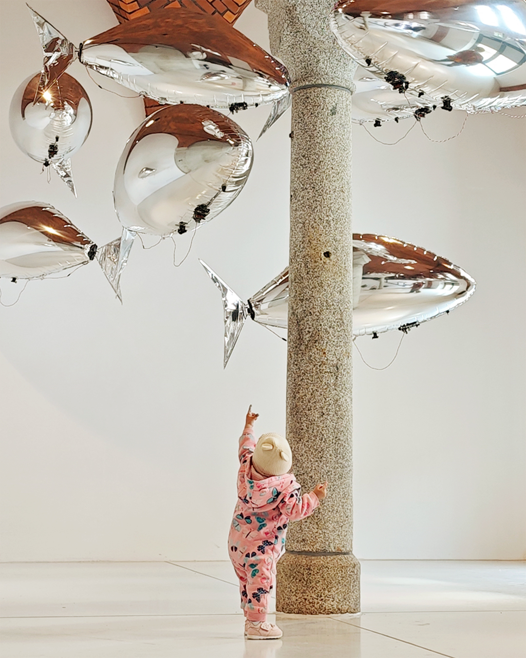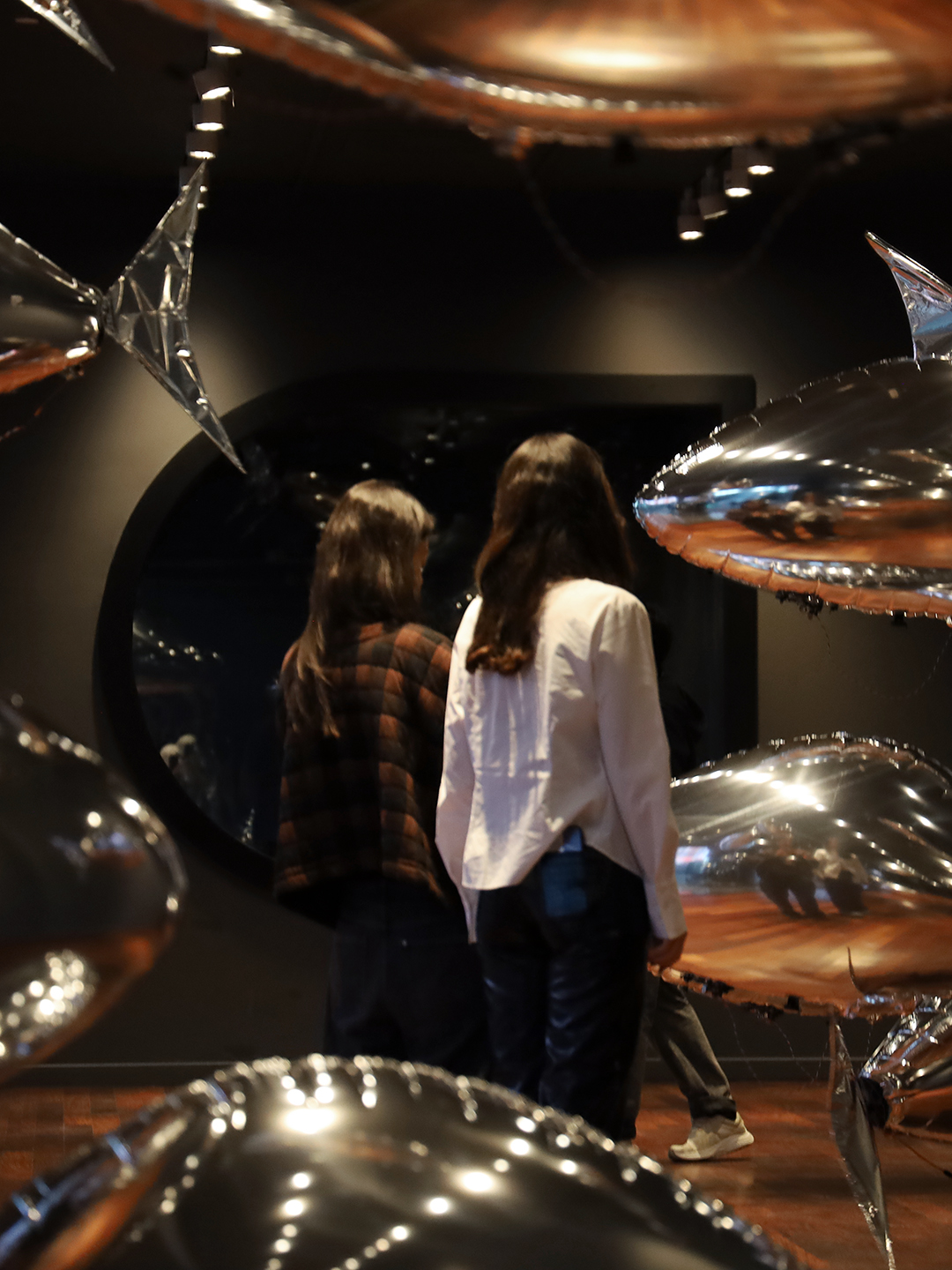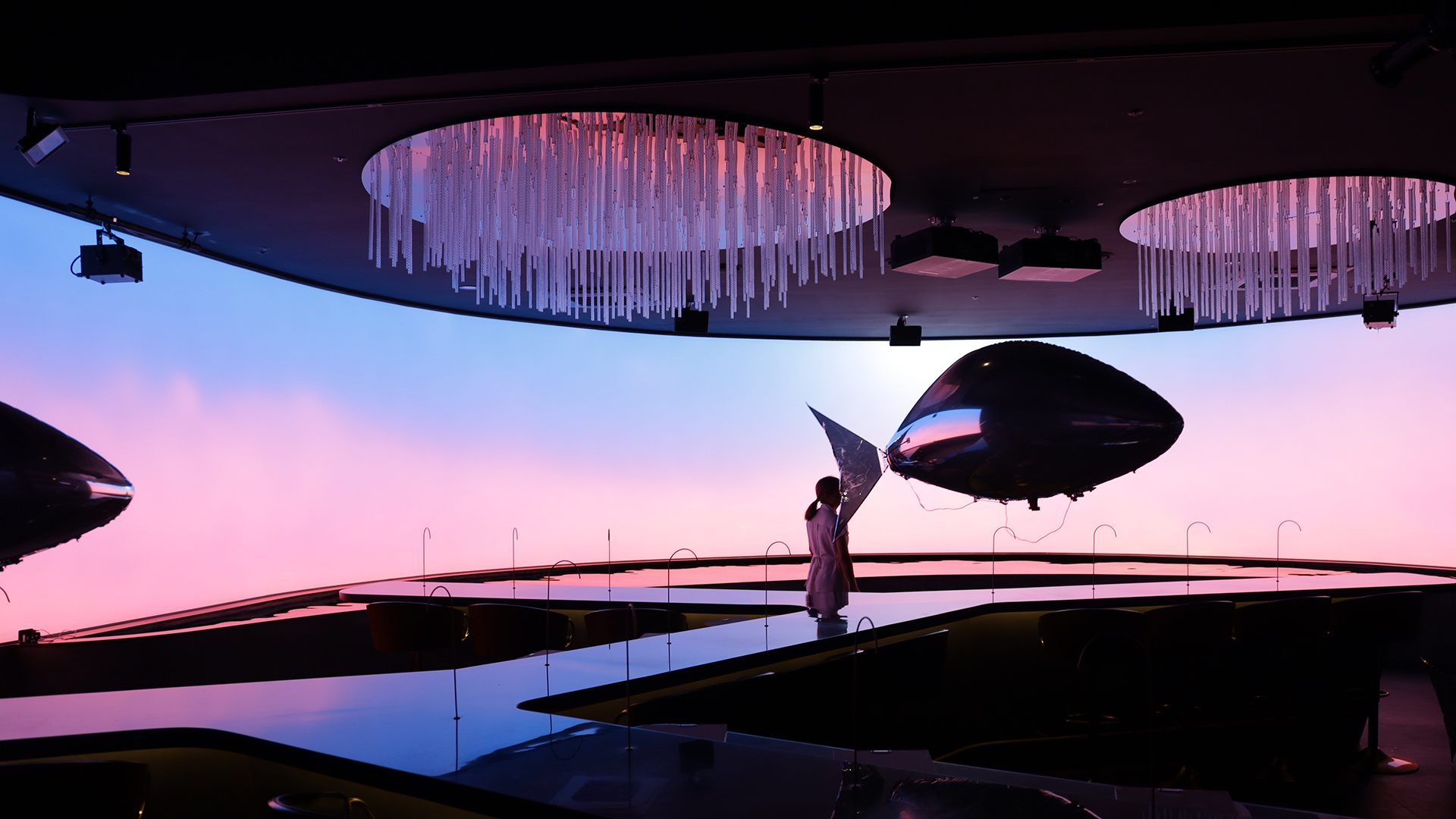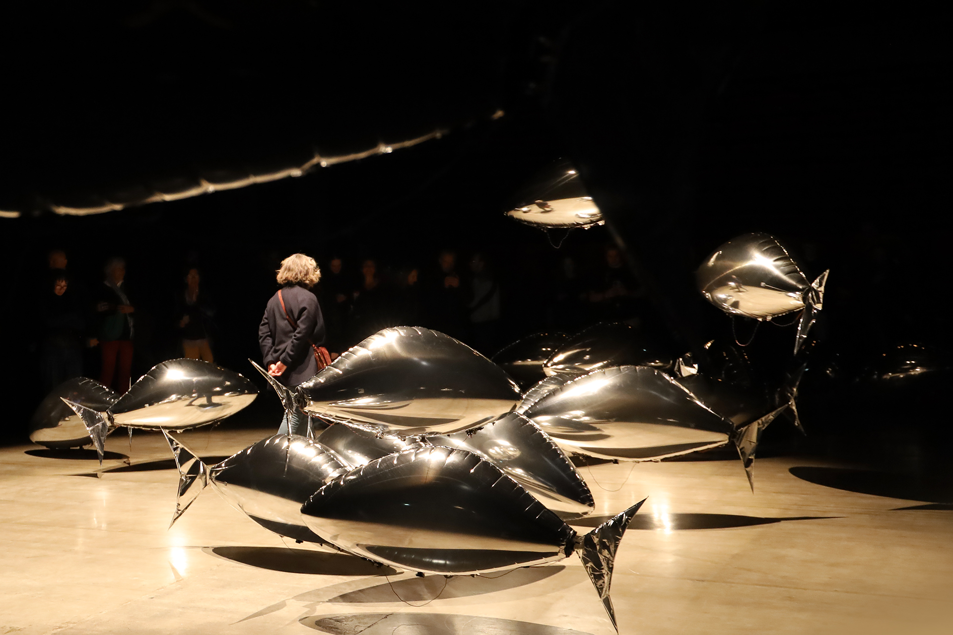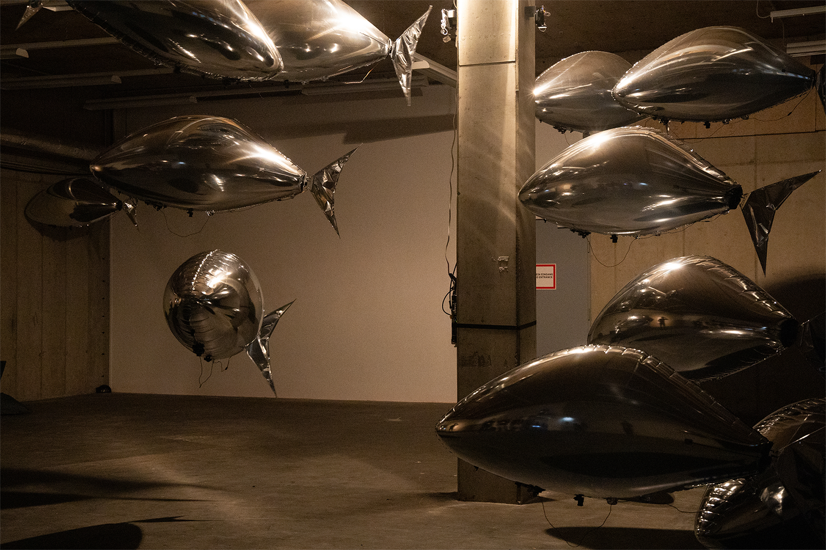 FLOCK OF by bit.studio - Discover the supernatural nature of floating fish. An immersive installation art that presents a spectacle of a school of fish soaring through the air, transformation into a flock of fish. Traverse the borderlands of art and technology.