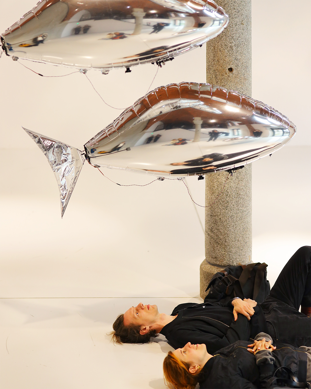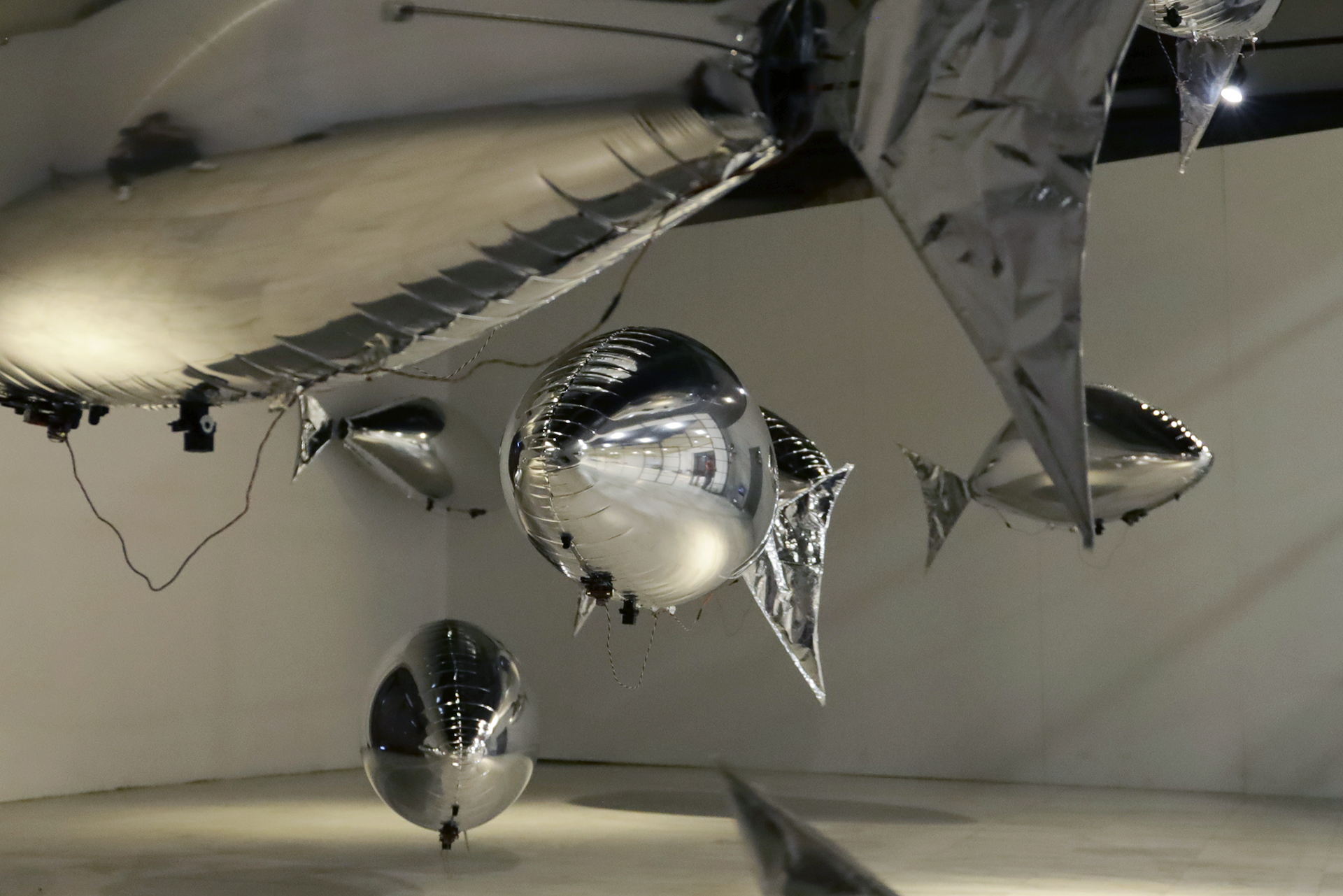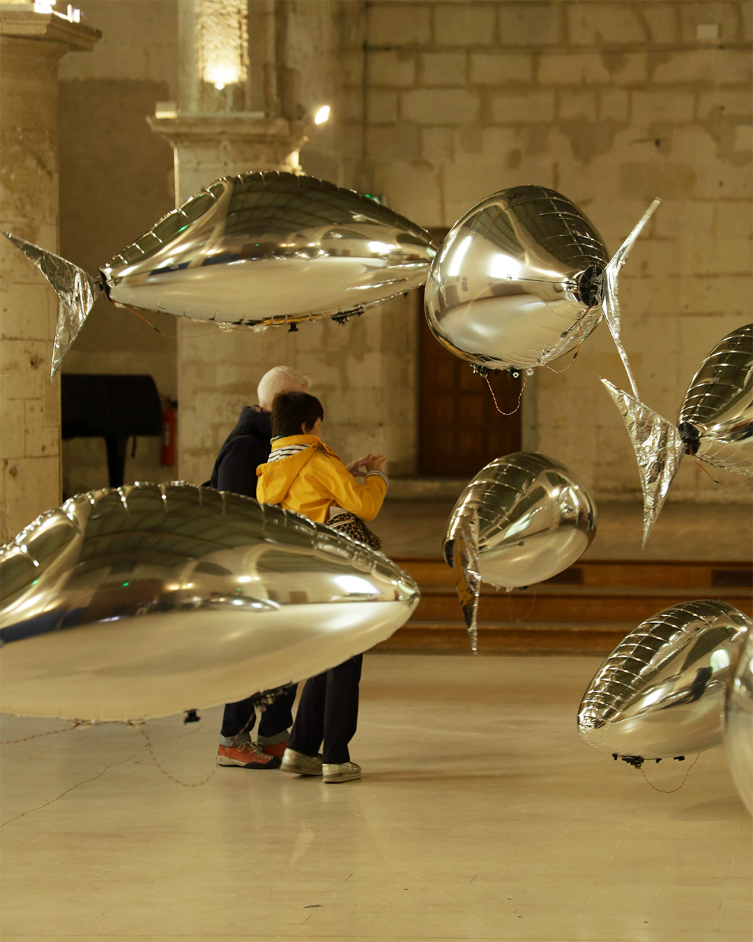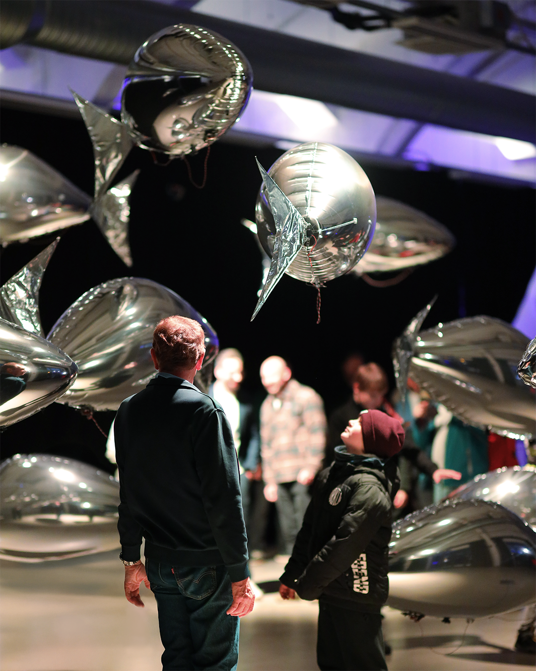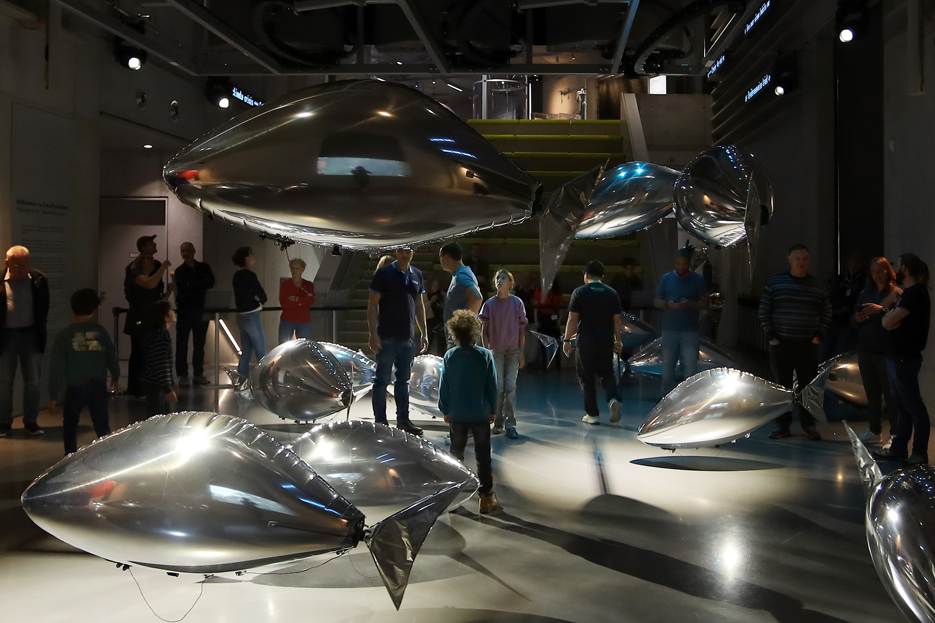 FLOCK OF by bit.studio - Discover the supernatural nature of floating fish. An immersive installation art that presents a spectacle of a school of fish soaring through the air, transformation into a flock of fish. Traverse the borderlands of art and technology.