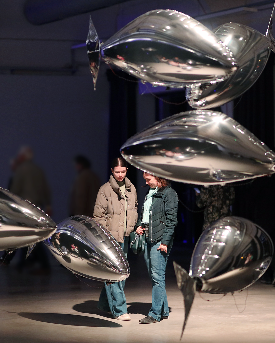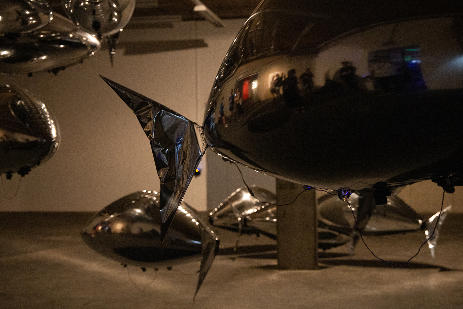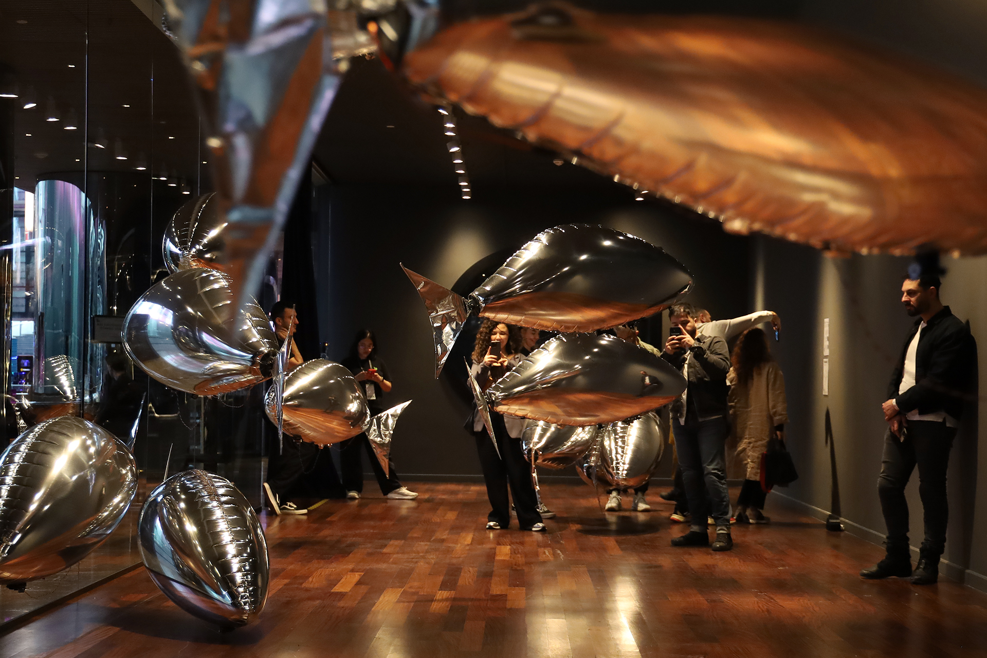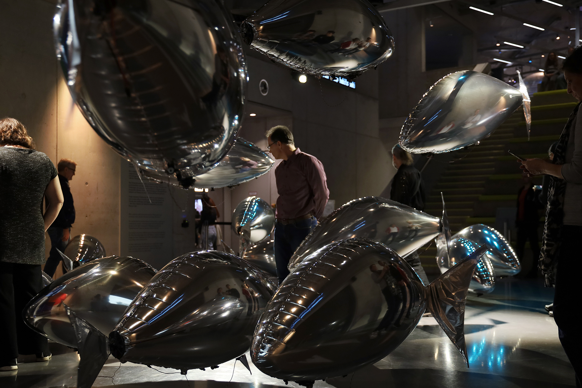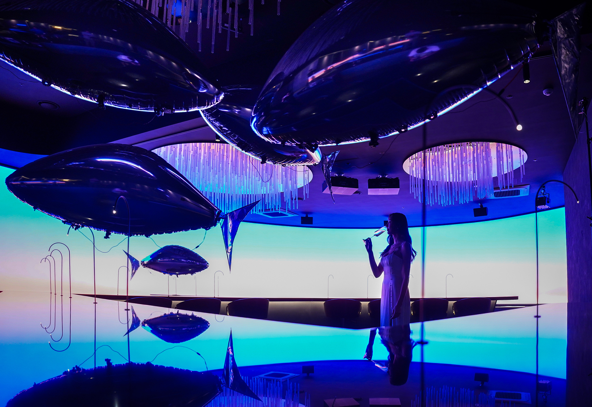 FLOCK OF by bit.studio - Discover the supernatural nature of floating fish. An immersive installation art that presents a spectacle of a school of fish soaring through the air, transformation into a flock of fish. Traverse the borderlands of art and technology.