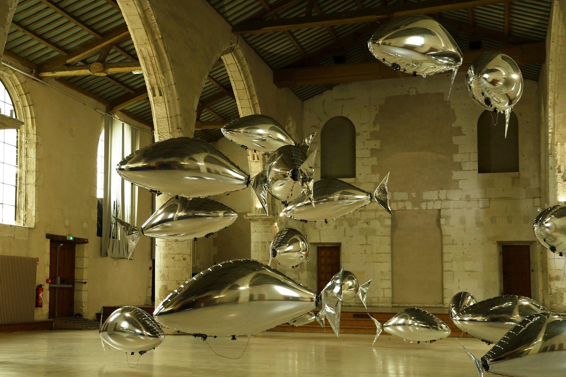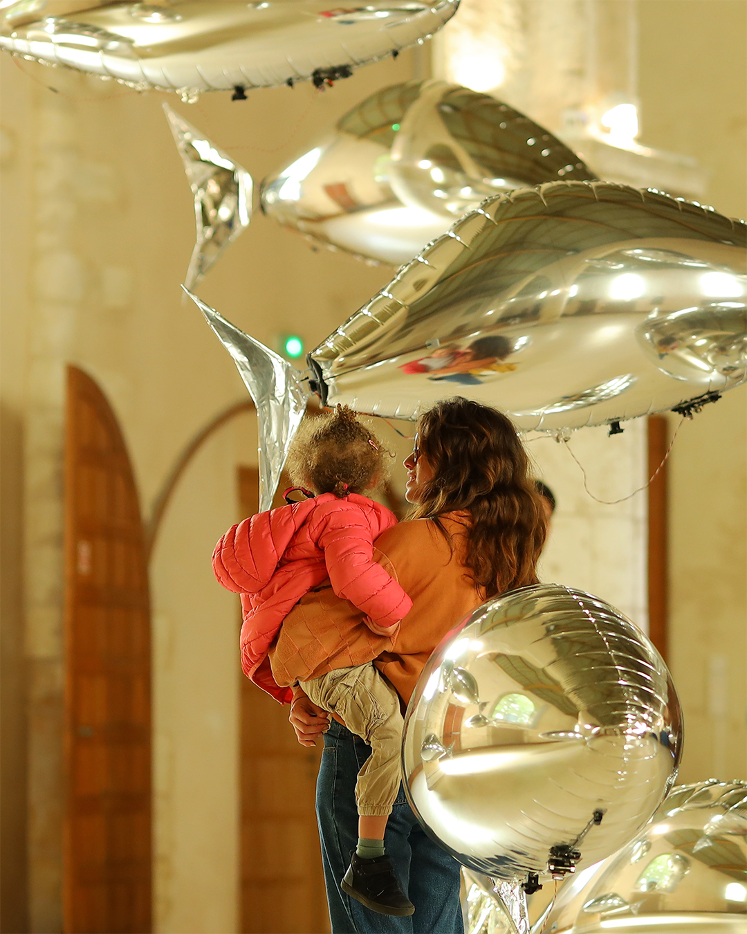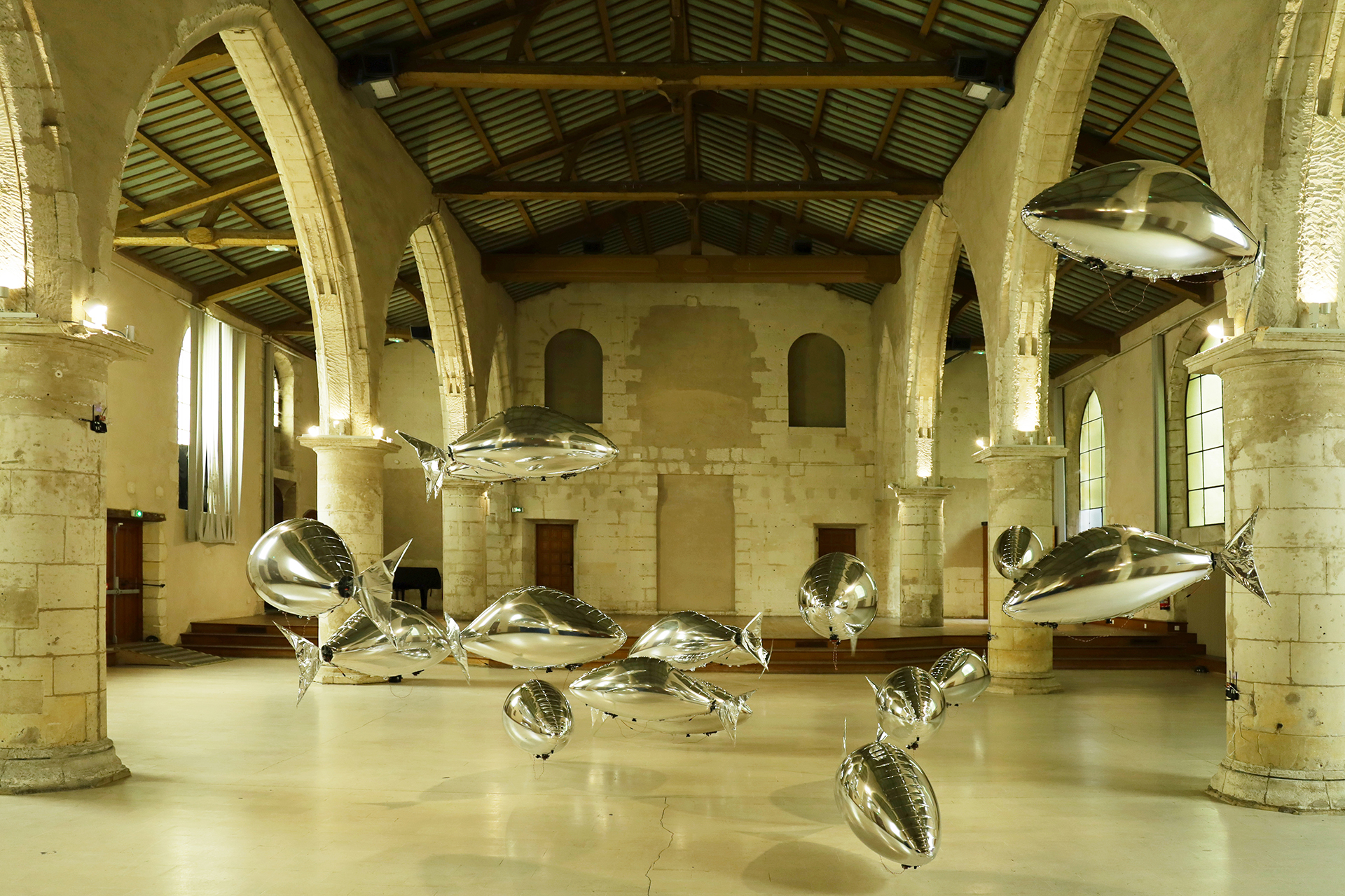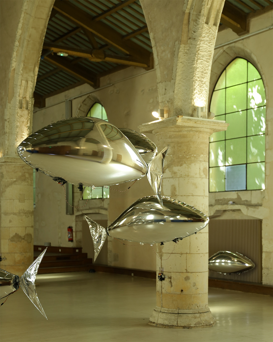 FLOCK OF by bit.studio - Discover the supernatural nature of floating fish. An immersive installation art that presents a spectacle of a school of fish soaring through the air, transformation into a flock of fish. Traverse the borderlands of art and technology.