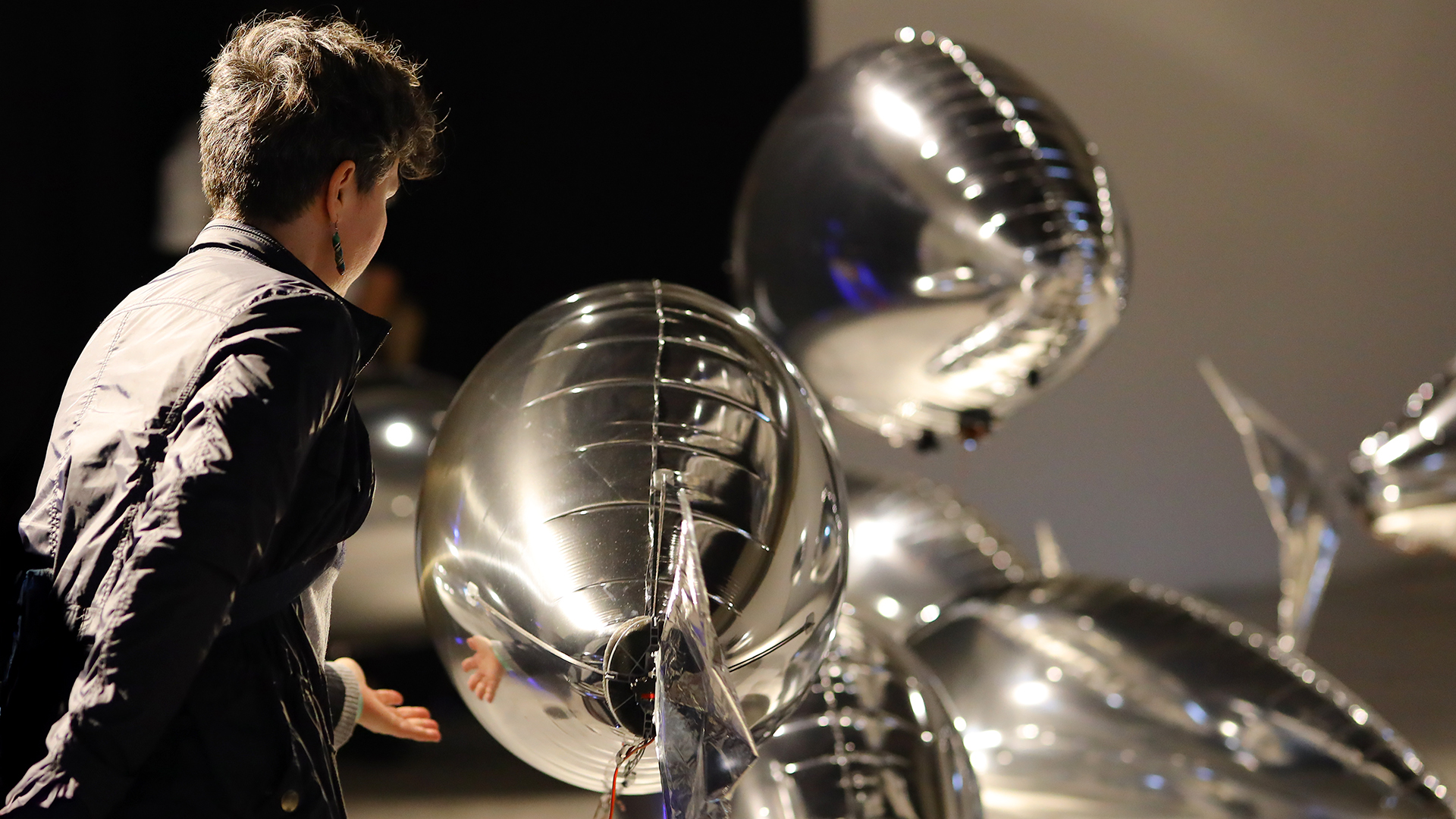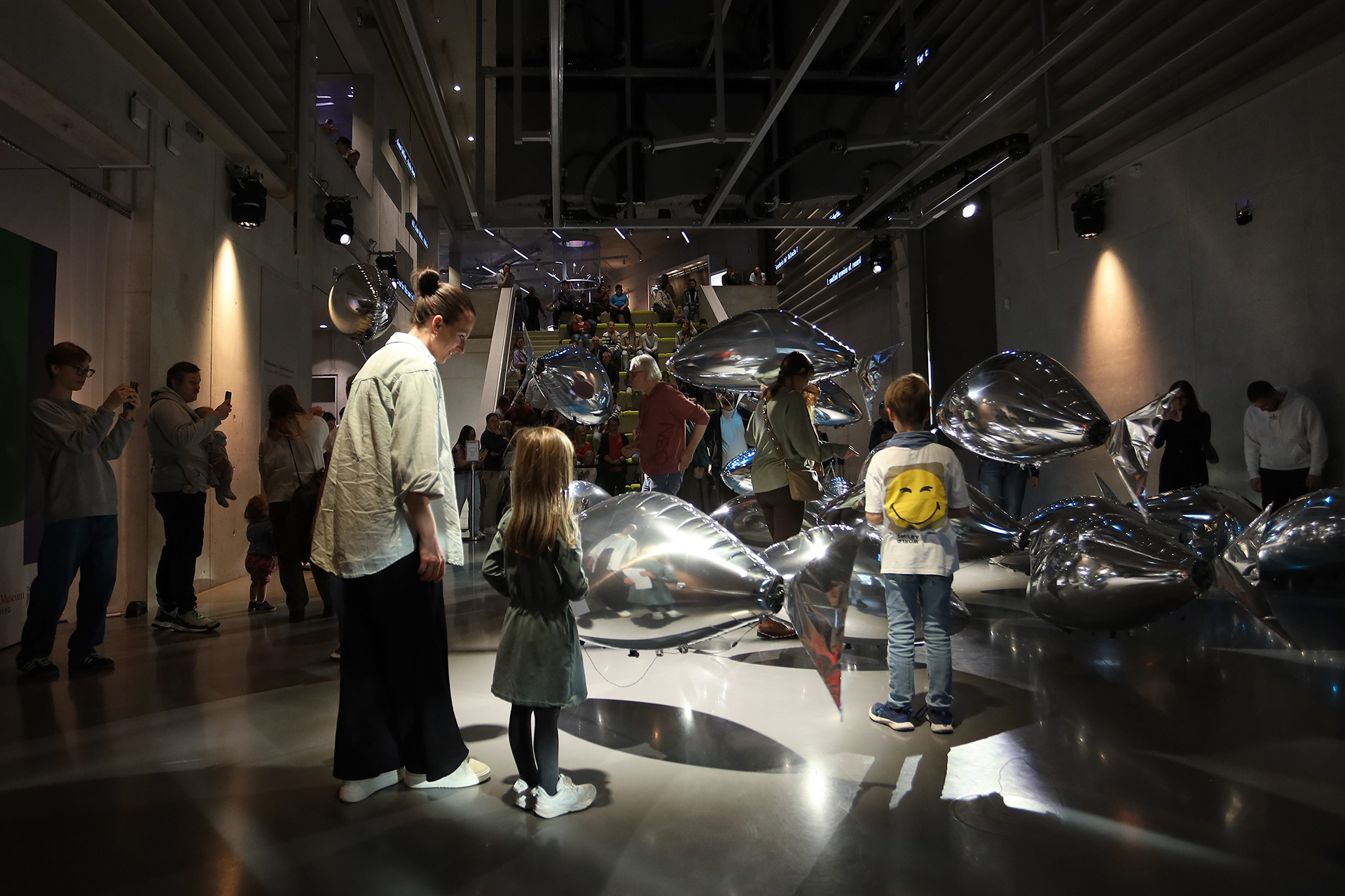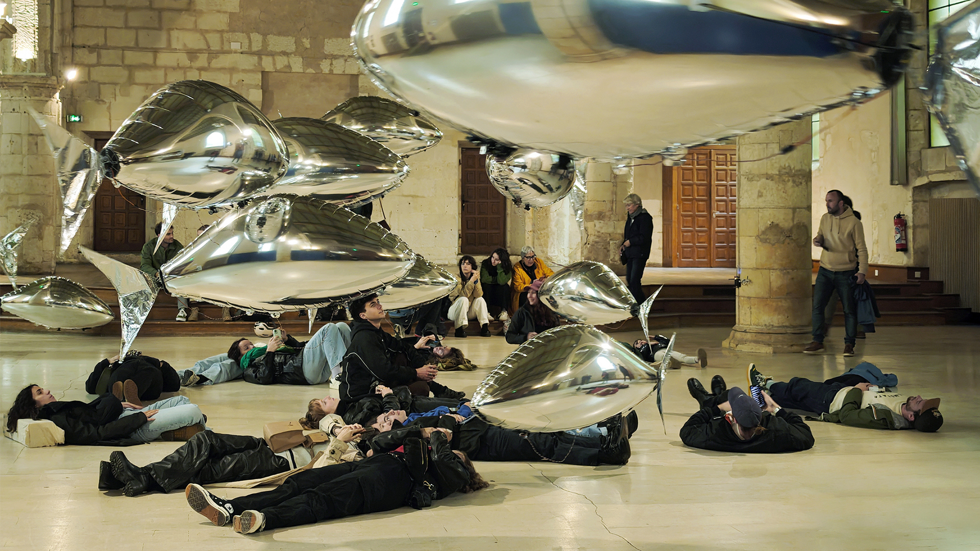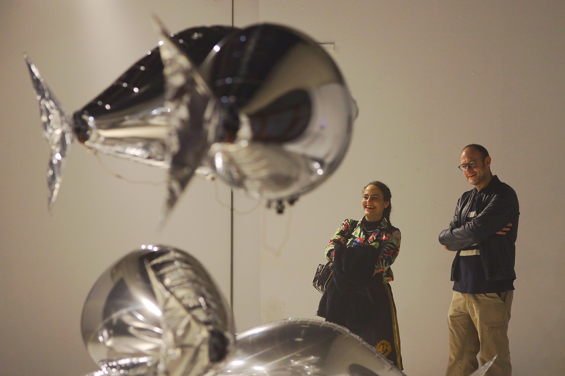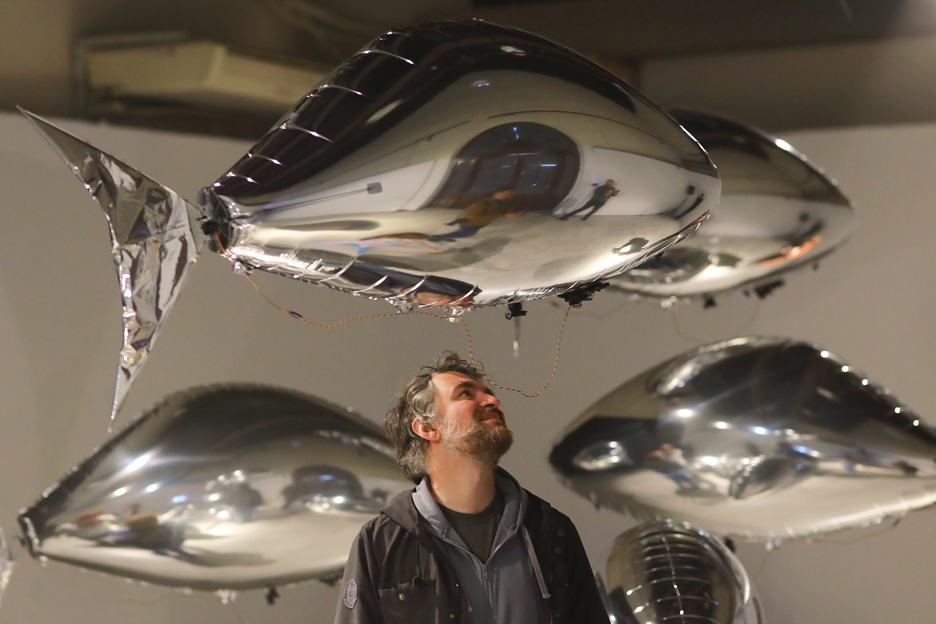 FLOCK OF by bit.studio - Discover the supernatural nature of floating fish. An immersive installation art that presents a spectacle of a school of fish soaring through the air, transformation into a flock of fish. Traverse the borderlands of art and technology.